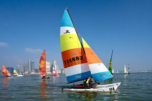 The International Catamaran Invitational (Hobie 16 unified design group) is being held at the waters south of the Macao Channel off the Macao Science Center. The top three teams after today’s four rounds of races are Cat Fever, LC Sailing Team and Wavelets, respectively.